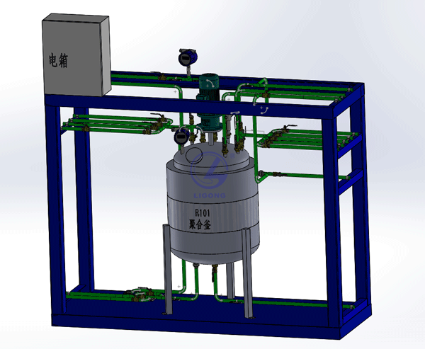 整套裝置由鋼制安裝框架、聚合釜、換熱器、凈化釜、仿真儀表、就地計算機操作臺、、就地智能儀表控制上位監(jiān)控軟件、外置配套設備等組成,工藝路線簡潔清晰,現場儀表與通訊模塊有機結合,上位計算機控制,設置DCS界面及自動評分系統。