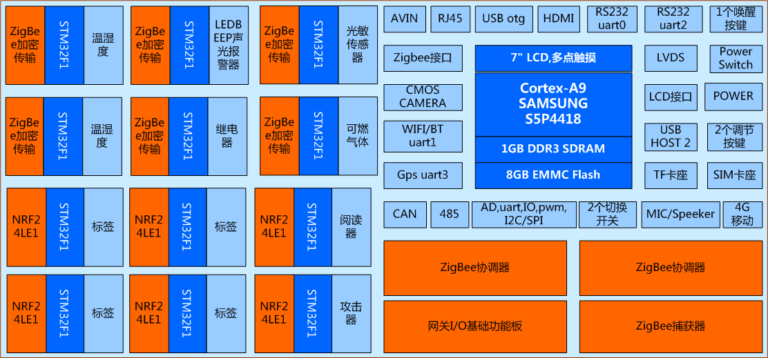 3.感知層包含ZigBee終端設備:可以配置為加密數據傳輸,支持ZUC、Snow 3G、Lblock、Kasumi、AES五種加密算法。支持黑白名單防攻擊。