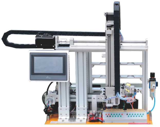一、裝置特點 1. 配置三軸機器人作為裝配的執行機構,具有 X軸、Y軸、Z軸三個方向的執行能力,可完成智能抓取物料放料等功能; 2. 配置有光電開關,光電傳感器,光纖...