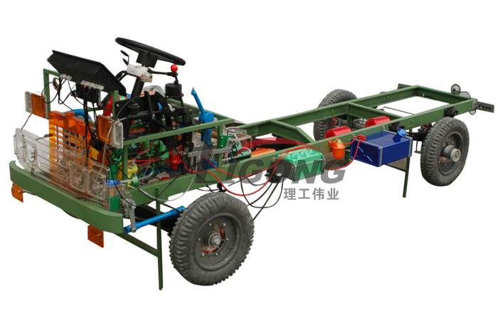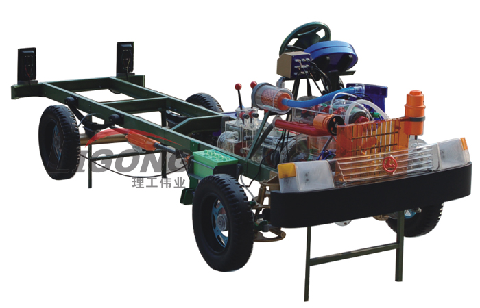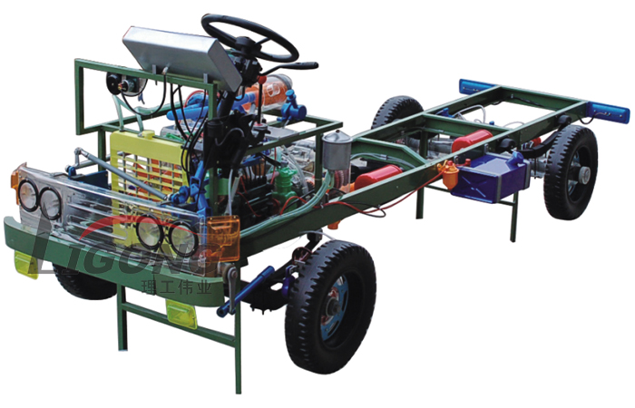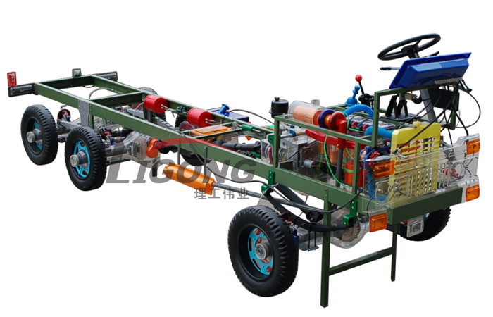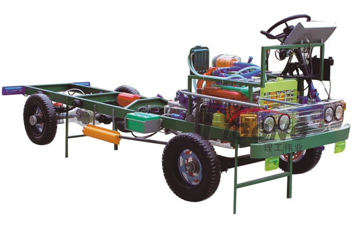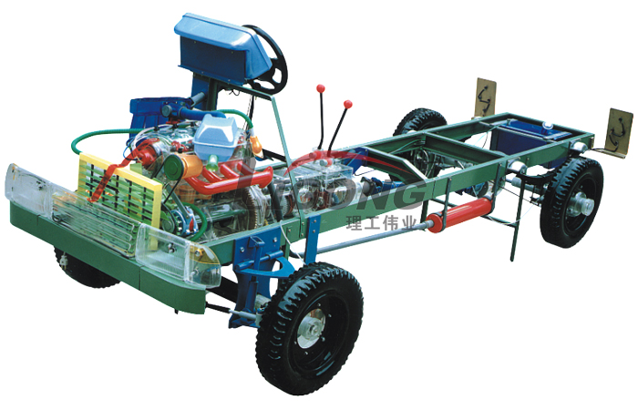透明汽車整車模型選用透明有機玻璃制作,內中部件均以硬質塑料料加工,用 螺絲固定在金屬高溫烘漆而成的車架上。各總成部分都以壓模成形加 工,代替過去膠粘合的方法,使產品在強度上有很大提高。發動機總成用電機驅動,在油門處設有調速裝置,能演示發動機轉速高低。離合器分離明顯,操縱靈活,離合器外殼整體壓模而成,變速箱和各檔齒輪用各種顏色表示,換檔靈活,手制動美觀。后橋外形壓模而成,內中主減速、差速轉動自如,輪轂剎蹄壓模成型,剎蹄可調節,前橋輪鼓可調整,轉向裝置以及電瓶、油箱、水箱,制動管路分布清楚一目了然。電路采用對插件前后分布,燈架、風窗、儀表板、后燈架用透明有機玻璃壓模成整體美觀逼真。