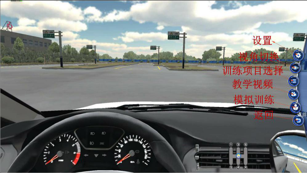 4-1.基礎(chǔ)訓(xùn)練:包含上下車、視角調(diào)節(jié)、點(diǎn)火練習(xí)、方向盤練習(xí)、踏板練習(xí)、手剎練習(xí)、手動檔位練習(xí)、練習(xí)燈光雨刮、起步靠邊停車。