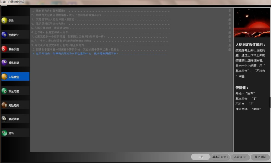 (4)檢查方法: 對屏幕上出現的問題通過工作臺上的數字選擇鍵(1、的確如此;2、似乎如此;3、不太象;4、的確不是)作出回答。 根據回答結果作出評價。