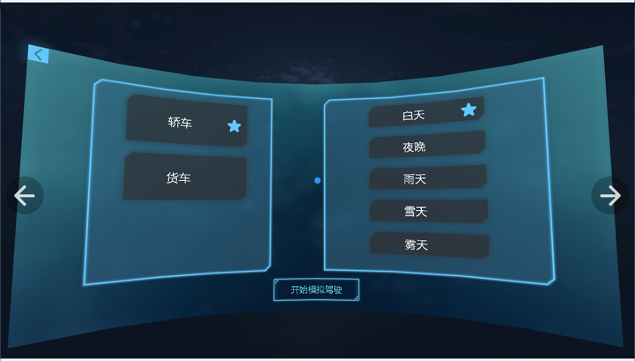 1、VR動畫交互:酒駕模擬體驗、毒駕模擬體驗、超速模擬體驗、超員模擬體驗、超載模擬體驗、疲勞駕駛模擬體驗、危險道路模擬體驗、緊急避讓模擬體驗; 2、模擬駕駛系統:天氣選擇(白天、夜晚,雨天,雪天、霧天) 、科目場地選擇(倒車入庫,坡道定點停車和起步,側方停車,曲線行駛,直角拐彎,公路,十字路口,)、車型選擇(大貨車,小轎車); 3、模擬考核系統:駕駛考核、成績評定、考核對象基本信息、駕駛基本知識、交通法規、理論知識模擬考試、考核信息的維護與管理; |