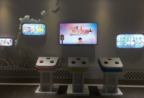 設置交通安全知識答題測驗裝置,讓參觀者結合前面學到的交通安全知識回答測試問題,以此檢驗參觀學習的效果,成績優良者可以并給予一定的物質獎勵。無需裁判,自動計分,并統計成績和排名,富有樂趣,管理方便,安全自助式不需要任何人來協助