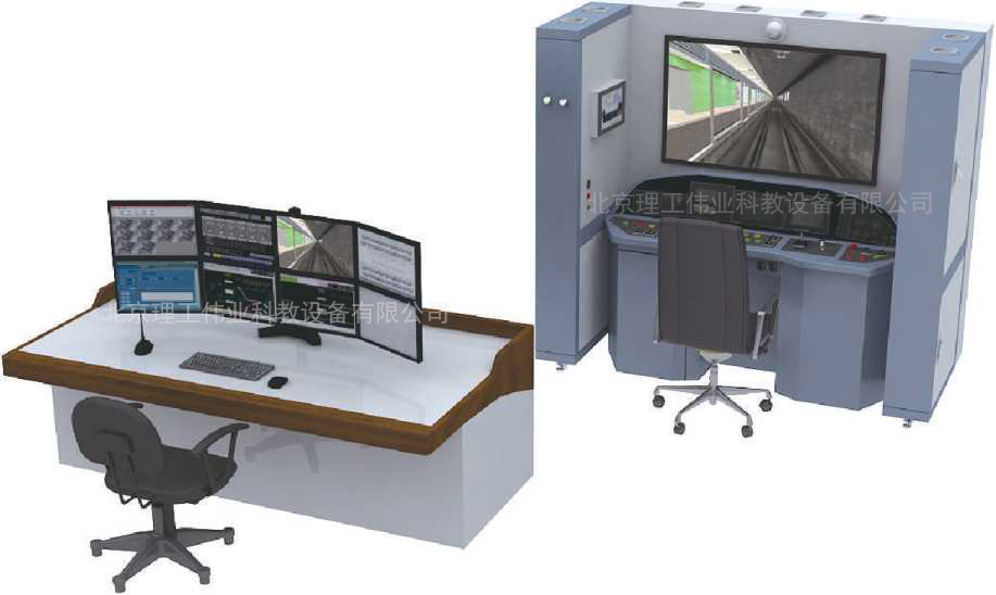 中型列車駕駛模擬訓練系統由駕駛臺、培訓軟件、考核軟件、監控軟件、獨立視景系統、獨立VTM (Virtual Training Model)系統、獨立的教員控制臺組成。