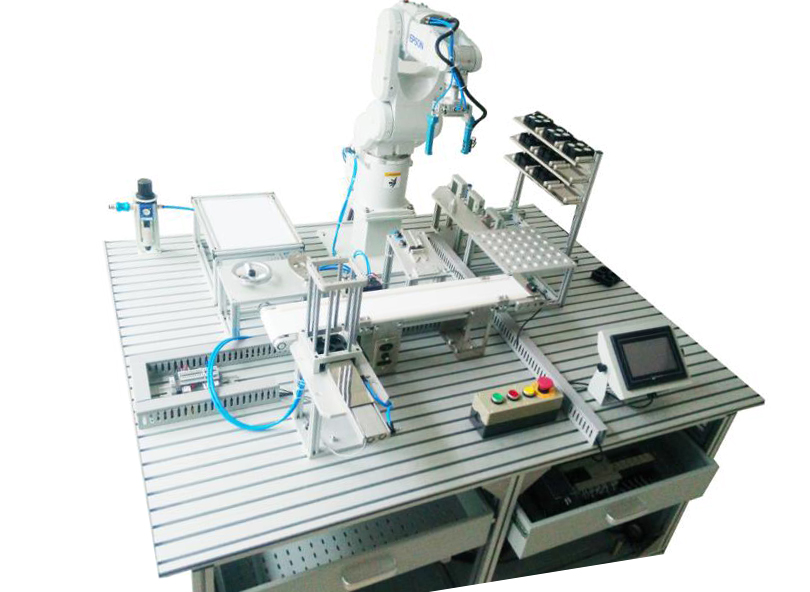 機電一體化基礎實訓設備要求由一臺六軸工業機器人、書寫工作站、曲面軌跡工作站、碼垛工作站、實訓桌、電氣控制部分組成。搭載工業機器人的基礎應用模塊,可以對機器人的應用進行擴展。