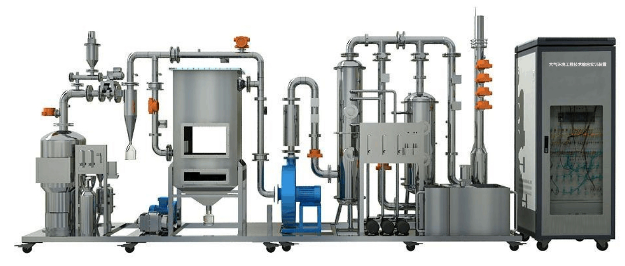 大氣環境工程技術綜合實訓裝置主要由煙氣發生系統、煙氣處理系統、電氣控制系統以及煙氣監測系統等四部分組成。