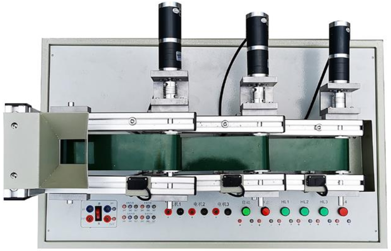 LGPFZC-1自動(dòng)送料裝車(chē)實(shí)訓(xùn)模型系統(tǒng)是用于物料輸送的流水線設(shè)備,主要是用于煤粉、細(xì)砂等材料的運(yùn)輸。本實(shí)訓(xùn)模型通過(guò)三臺(tái)電機(jī),三個(gè)傳送帶、料斗、小車(chē)模擬車(chē)斗)的配合,有效地完成物料的運(yùn)送、故障停止等功能。三臺(tái)電機(jī)控制三節(jié)傳送帶運(yùn)輸,電磁鐵YA控制料斗下料與否,傳感器ac檢2測(cè)運(yùn)料小車(chē)空滿;K1、K2、K3分別為電機(jī)M1,M2、M3故障設(shè)置開(kāi)關(guān)。