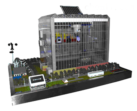 1、仿真沙盤,包括溫室大棚培育單元、澆灌單元、遮陽卷簾單元、食品運輸加工單元等模擬場景。