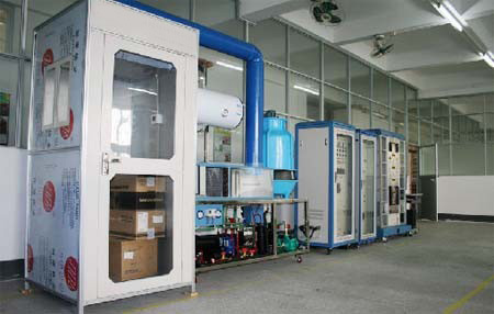 3. 中央空調微型化同時,并保證整個中央空調系統的完整性和合理性,整套實訓設備可演示夏季制冷循環,冬季制熱循環,在蒸發器、冷凝器、冷卻塔、模擬鍋爐配置了溫度測量點,便于學生觀察,了解各種參數的變化情況和系統的工作狀況。并人為增加了一些輔助配置,讓學生全面地掌握中央空調技能知識。