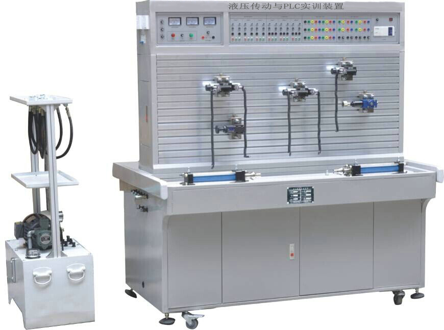液壓傳動與PLC實訓裝置是高校機電一體化對氣、電、液控制的教學大綱要求,采用了開放型綜合實驗臺結構,廣泛征求專家教授與老師的意見,經不斷創新改進研制而成的。是目前集氣動控制技術、液壓傳動控制技術以及PLC可編程序控制器控制技術于一體的理想的綜合性實驗設備。實驗時,它們可以相互輔成,交叉控制。可以讓學生直觀感性地對比與了解氣、電、液各自具有的特點、特色、及優缺點等。