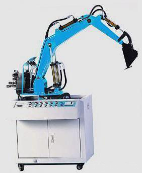 3、挖掘機械按實物比例縮小的全金屬結構,實驗時啟動液壓系統根據實驗要求模以操作機械進行工作。