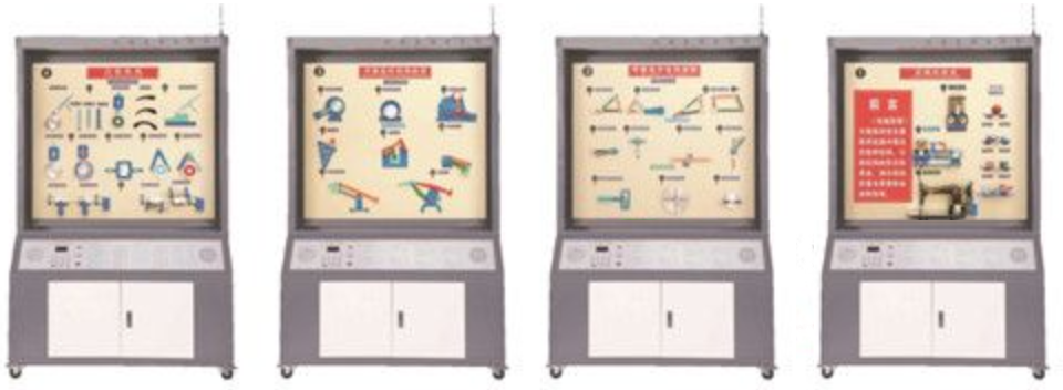 “機械原理陳列柜(10個分柜,帶智能語音講解)”是根據各院校《機械原理》等相關課程的教學大綱要求而研制的。它由10個陳列分柜組成,主要展示平面連桿、組合、空間、凸輪、齒輪、間歇運動等各種機構及輪系的類型和功用。具有多功能語音播放控制系統,可以控制陳列柜中各種機構的運行動作并進行實時講解,通過智能控制的陳列柜進行教學,可讓學生初步了解和掌握常見機構及輪系的機械原理。