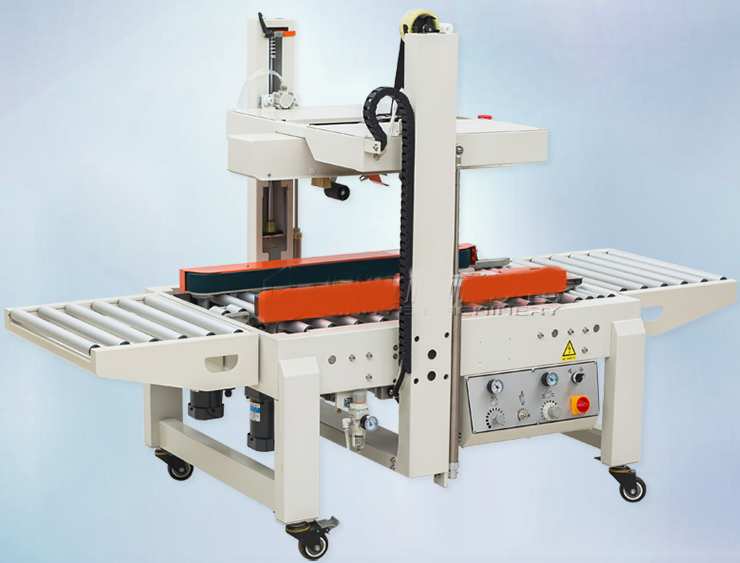 封箱機(jī)高度和寬度可根據(jù)紙箱大小自動調(diào)整到合適的位置可滿足紙箱尺寸不統(tǒng)一,但需要連續(xù)封箱的需求。