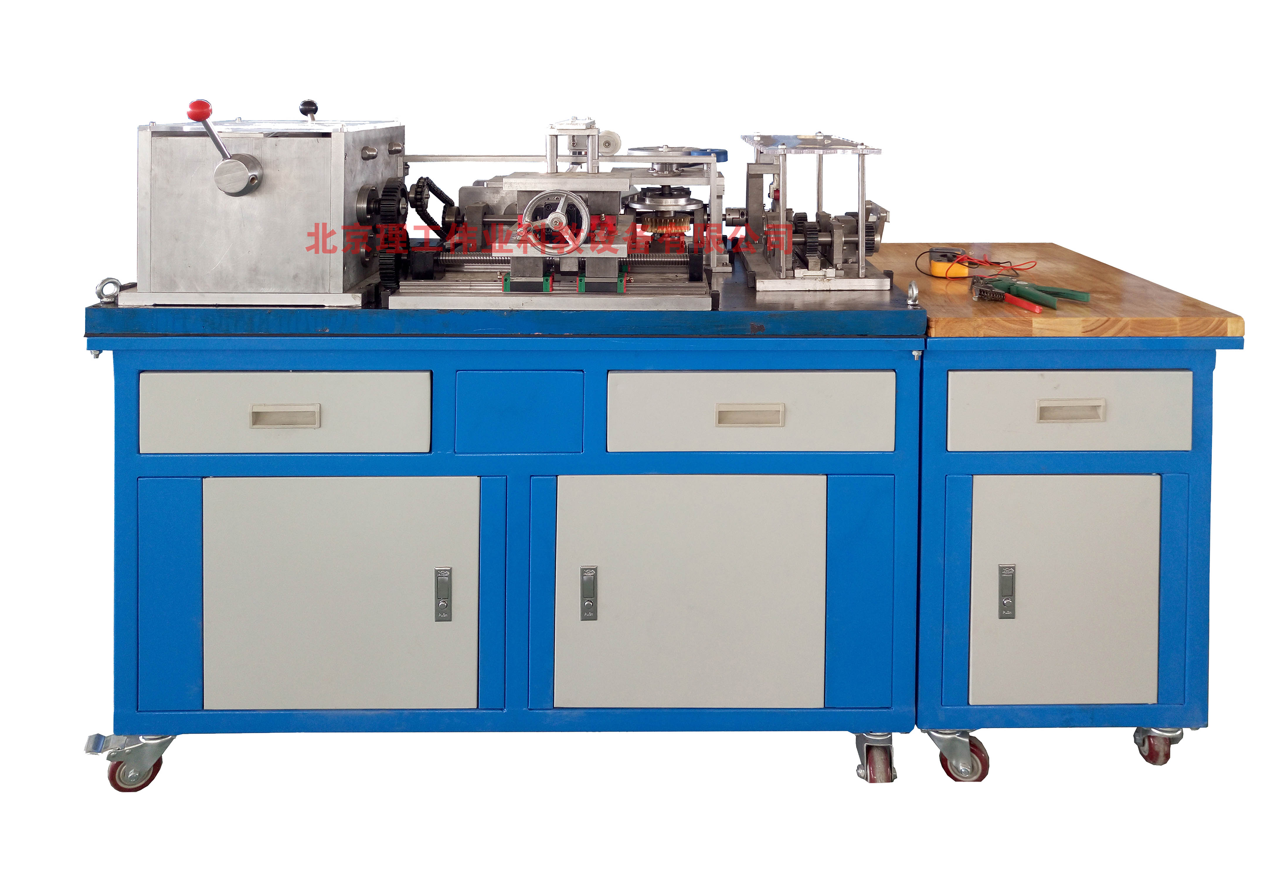 LG-JXZT01A型 機械裝調技術綜合實訓裝置主要由多種機械模塊組成,各個模塊可獨立訓練,也可綜合訓練。模塊包括(動力源、齒輪箱、十字滑臺、沖壓回轉工作臺、二級變速器、離合器、摩擦輪機構、曲柄及凸輪組合機構等)。涉及各種機械設備裝配中的一些比較典型的技能點和知識點。比如:帶、鏈等傳動機構的裝配與調整、齒輪箱的裝配、沖壓設備的裝配、軸承的裝配與調整(深溝球軸承、角接觸軸承、圓錐滾子軸承、推力球軸承)、圓柱圓錐齒輪的裝配與調整、蝸輪蝸桿副的裝配、齒條的裝配、曲柄及凸輪副的裝配與調整、槽輪及摩擦輪的裝配、摩擦輪與滾道裝配、滾珠絲桿副裝配、直線導軌的裝配與調整、相關平行度及垂直度的調整與檢測等。