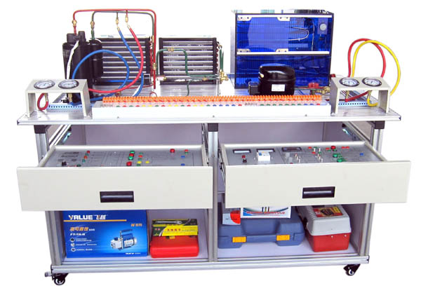 2、導軌式鋁合金安裝平臺由標準規(guī)格的鋁合金工業(yè)型材組成,作為學生操作訓練的平臺,上面安裝有空調(diào)系統(tǒng)部件和冰箱系統(tǒng)部件。