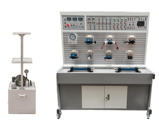 1、基本型液壓綜合實驗臺由實訓臺、實訓桌、電氣控制模塊、液壓泵站、液壓元件等組成。