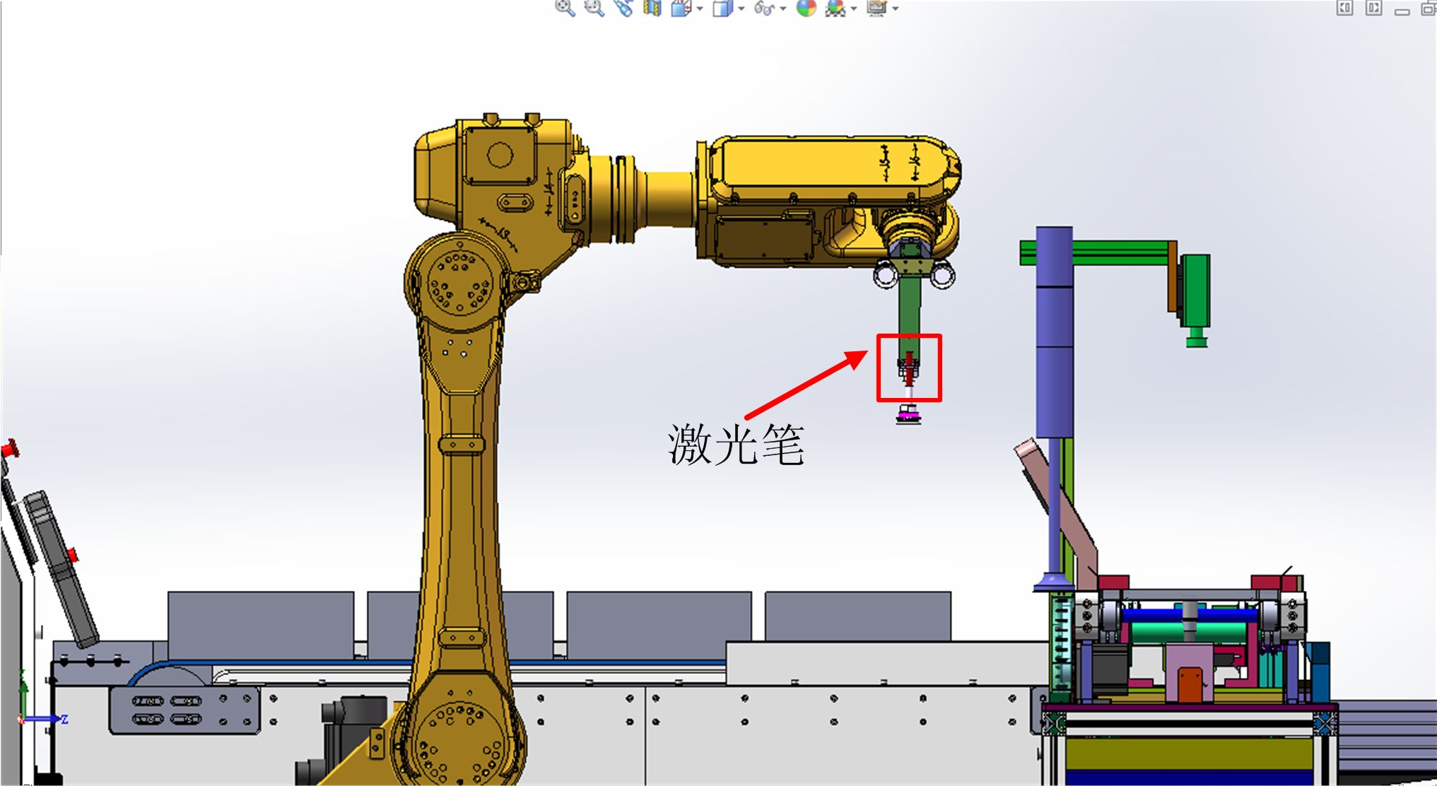 如圖 2-4 所示,在工業(yè)機器人末端夾具上安裝了一個激光筆,具體調節(jié)步驟如下: