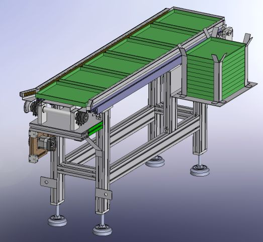 2、物品盒流水線物品盒流水線采用板鏈結構,負責成品物品盒的裝箱及傳送,為5工位流水線,裝在3個物品盒(占用3個工位)。