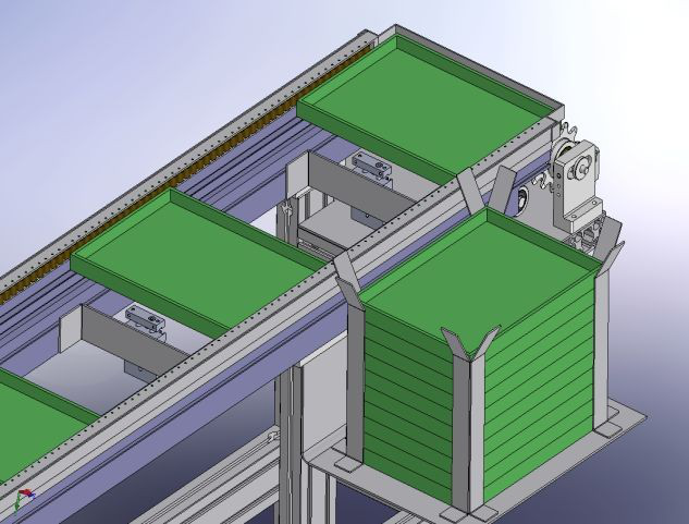 (3) 托盤流水線,負責把貨品托盤輸送到視覺檢測工位,經視覺定位識別輸送到抓取工位;