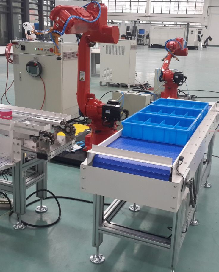 (1) 選用6軸關節(jié)型工業(yè)機器人+堆垛直角坐標機器人+AGV移動機器人,該三種機器人都是目前工業(yè)現場應用比較廣泛的機器人;——切合工業(yè)現場,體現機器人的多樣性;