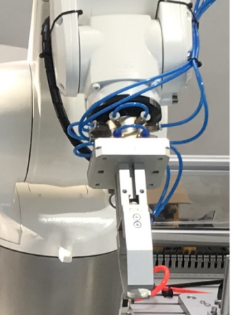 4、工業機器人末端安裝電磁吸盤,可匹配多種夾具。同時至少配備4種工裝夾具,夾具有專門的工具架安放,每個夾具的負重至少在3kg以上。按照實訓項目的要求可分別配合工業機器人完成物料夾取、軌跡模擬、寫字繪圖等工作。