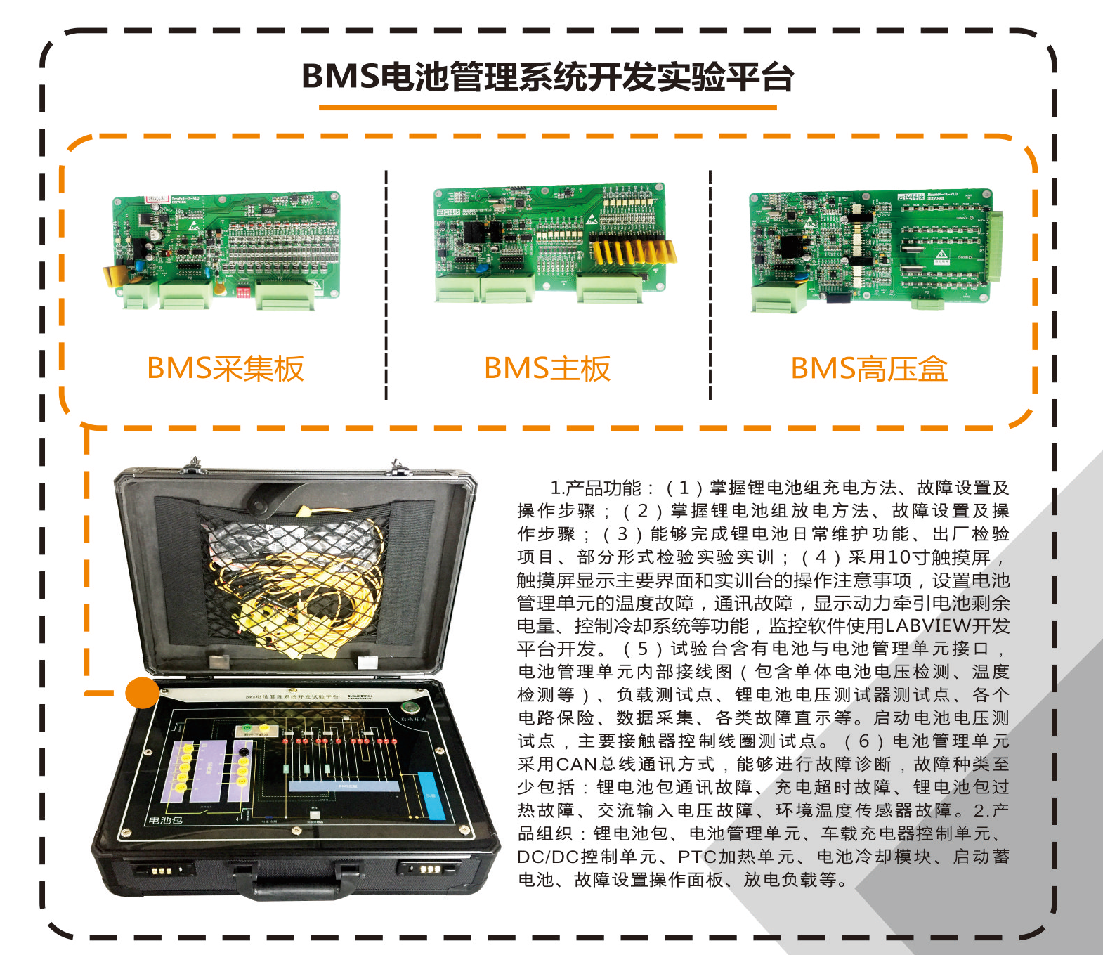 BMSPACK組裝實(shí)驗(yàn)臺(tái) 技術(shù)要求: 1. 實(shí)訓(xùn)臺(tái)采用高性能嵌入式數(shù)字電池電路板,故障模擬板,ARM核心主控板,車用磷酸鐵鋰動(dòng)力電池,臺(tái)架動(dòng)力電池組采用24節(jié)單體電池串聯(lián)組...