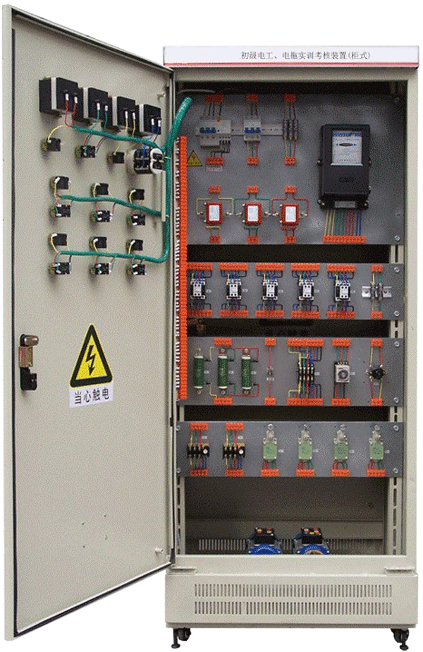 一、概述 電工實訓考核裝置是中職在電工培訓教學中而設計,完成培養學生在實踐中的基本技能和接線技巧,電工實訓考核柜,它包括了照明電路、電力拖動控制電路等...
