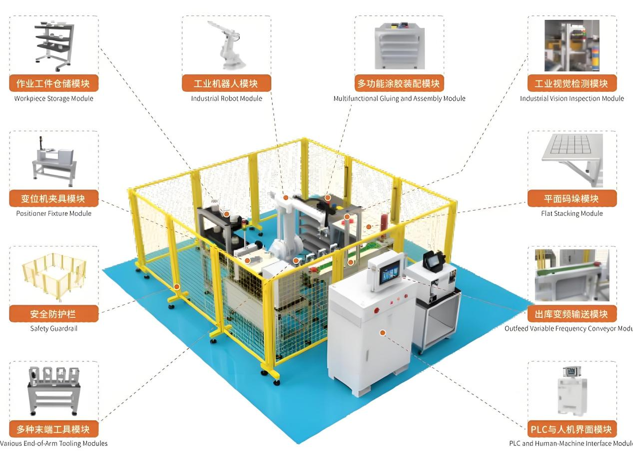 一、功能總體介紹 平臺以汽車零部件(輪轂)的打磨、裝配、激光雕刻、檢測等工序為背景,采用高度模塊化單元自由組合理念設計,主要包括執行單元、立體倉儲單元...
