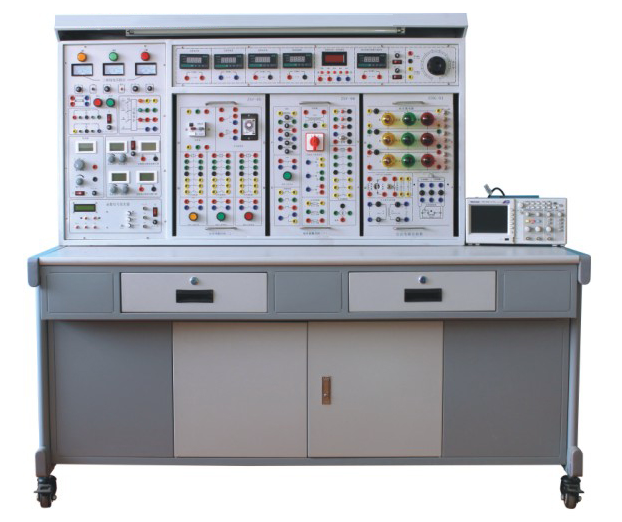 本電工實訓臺主要由實訓屏、實訓掛箱、實訓桌等到組成。