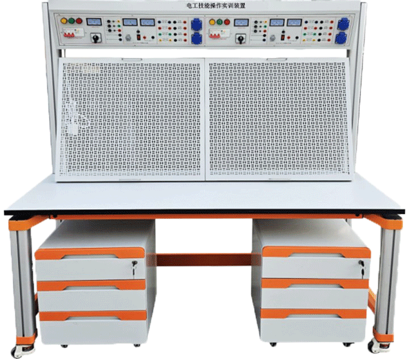 本實訓臺由實訓屏(內置電源)、實訓桌、實訓儲物柜三大部分組成。