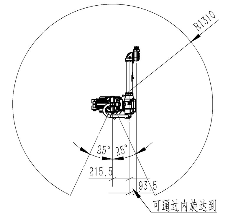 2、高精度,高靈活性:平均重復精度可達+0.03mm,*大0.05mm;不僅具備通用6軸功能,當使用通用機器人用法功能無足夠空間時,還可以編程內旋轉模式另辟蹊徑實現避讓。