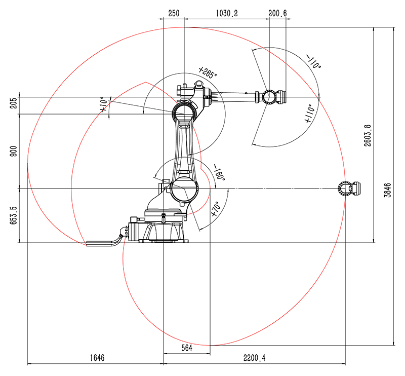 3、工作范圍寬廣靈活,各軸運動范圍大,臂展2200mm,可以覆蓋眾多工作場景,手腕結(jié)構(gòu)緊湊,可以在狹窄空間內(nèi)靈活轉(zhuǎn)動。