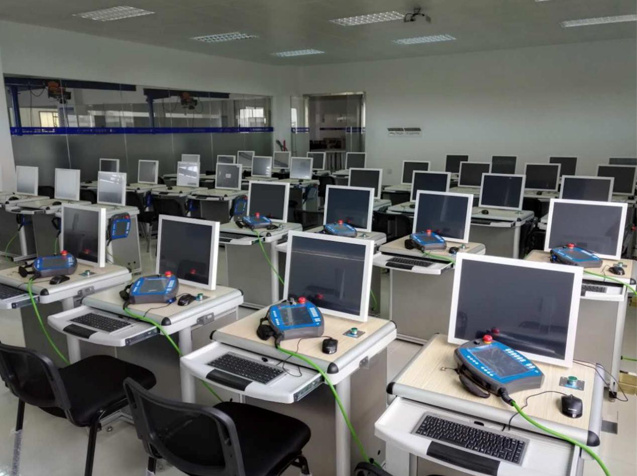 LGH-LS01型 機器人理實一體化實訓系統是針對機器人教學的一款產品,具有成本低,安全性高優勢。該產品能夠通過示教器操作 PC 上的虛擬機器人進行運動控制,且運動過程中沒有噪音。當教師從理論上講解之后,學生就可以動手操作機器人,能夠激發學生對機器人課堂學習的興趣,提高學生和老師之間的互動性。機器人理實一體化實訓系統用真實的示教器和真實的控制器控制模擬軟件上的虛擬機器人,模仿真實的機器人運動。省去伺服驅動、減速器、電機、機器人本體,節省成本。對于教學產品來說,安全性是很重要的,由于沒有使用實際的機器人本體,所以不存在安全隱患。