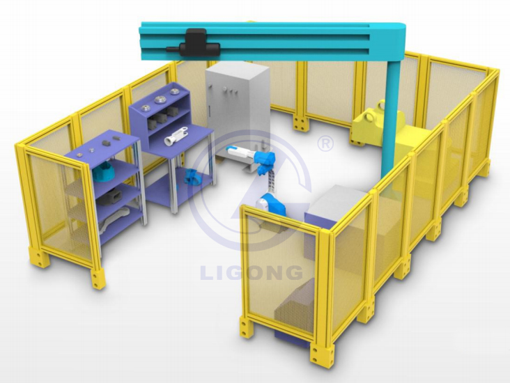 LGL-CZ06型 工業機器人機械拆裝及電氣拆裝平臺是按照機器人制造總裝車間的標準及機器人職業鑒定標準設計,配置為工業機器人完整機器人本體和控制柜,1臺微型電動葫蘆,1臺液壓積車、機器人機械拆裝和電氣拆裝所必須配備的工具工裝等。工業機器人機械拆裝及電氣拆裝平臺通過機械和電氣實訓拆裝,能讓學生全面認識機構人結構、機械裝調。工業機器人是一門高度交叉的前沿學科,機器人技術是集力學、機械學、生物學、人類學、計算機科學與工程、控制論與控制工程學、電子工程學、人工智能、社會學等多學科知識之大成,是一項綜合性很強的新技術。通過在實訓室的學習,使得學生基本熟悉這門技術,為今后從事機器人安裝、調試、維修打下基礎。