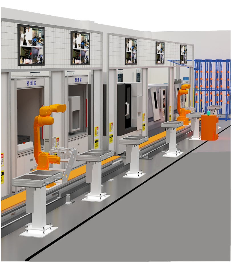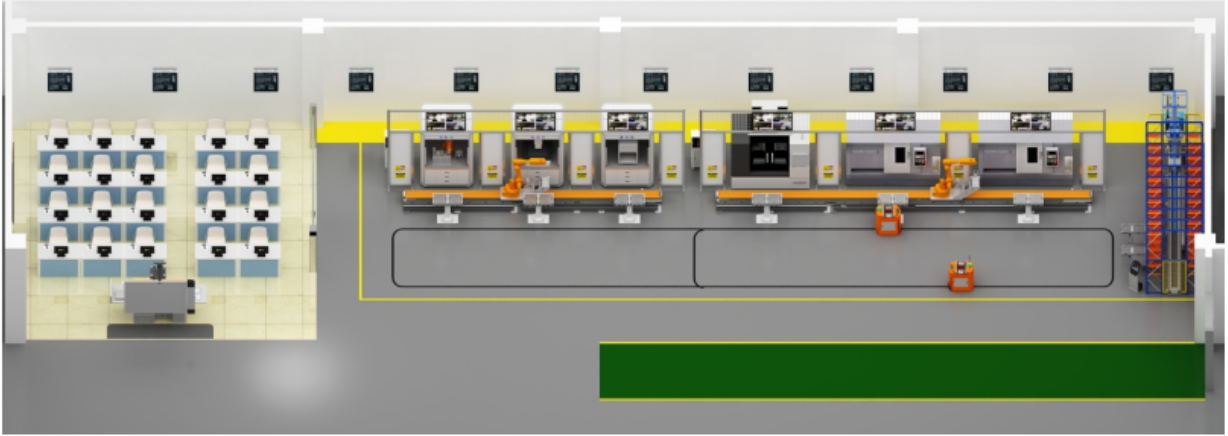 數字化協同制造與設計中心、數控機床加工制造單元及其自動化改造、自動化清洗單元、,自動化檢測單元、自動化裝配單元、自動化立體倉儲單元、多軸移動工業機器人上下料單元、AGV運載單元、監控單元、系統中央控制單元