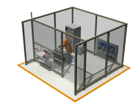 13、安全護欄:隔離護欄,高1000mm,框架采用2mm厚灰色棟梁鋁合金型材,鋼化玻璃10mm厚;工作站全部通透利于觀察,玻璃中間沒有隔斷;并安裝一個側開門;門上安裝安全檢測元件,機器人自動運行必須在門關閉狀態(tài)下進行;系統(tǒng)工作站安裝有3個急停按鈕,分別位于操作控制臺、模型安裝臺、隔離護欄上,以備緊急情況使用。