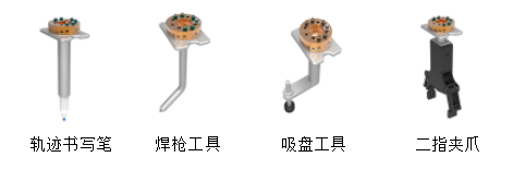 (1)工具支架: 材質(zhì):鋁合金、2020 鋁型材 表面處理:鋁合金銀白氧化處理 承載快換數(shù)量:4 個 具有光電感應器,實時反饋工具快換工具狀態(tài) (2)工具快換裝置: 快換類型:自動氣動型 機器人側: 數(shù)量:1個 承載重量:5kg (max) 氣源通路:6 路 通訊接口:12 路 重量:250g 夾具側: 規(guī)格: 數(shù)量:4 個 承載重量:5kg (max) 氣源通路:6 路 通訊接口:12 路 重量:115g 電動夾爪末端: 數(shù)量:1 套 氣缸缸徑:20mm 運動方式:往復型 復動行程:10.4mm 重復定位精度:0.02mm (3)白板筆書寫末端: 數(shù)量:1 套 固定方式:頂針固定式,可快速更換 (4)模擬焊槍末端: 材質(zhì):鋁合金 外形:120°尖端彎曲,模擬真實焊槍 (5)真空吸盤手爪末端: 吸盤數(shù)量:1 個 吸盤類型:φ13mm ,風琴式 吸盤桿:不可旋轉,緩沖行程6mm,頭部可安裝10mm、13mm、16mm不同規(guī)格吸盤。 |