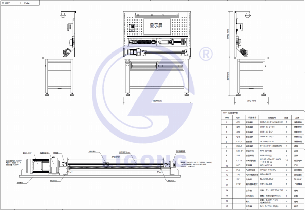 臺面尺寸 1500*800*780(寬*深*高),上部設置試驗裝置安裝屏高 1000 ,總重量 約 110KG。