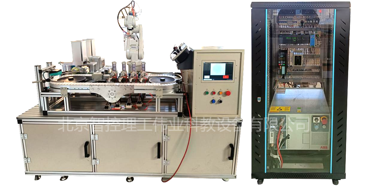 平臺至少由六自由度工業機器人系統、智能視覺檢測系統、可編程控制器(PLC)系統、RFID數據傳輸系統、工具換裝單元、四工位供料單元、環形輸送單元、直線輸送單元、工件組裝單元、立體倉庫單元、廢品回收框、各類工件、電氣控制柜、型材實驗桌、型材電腦桌等組成,實現對高速傳輸的工件進行分揀、檢測、搬運、裝配、存儲等操作。