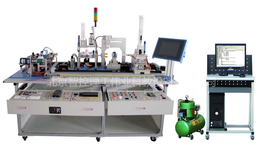 井式供料、切削加工、多工位裝配、氣動機械手搬運、皮帶傳送分揀等工作站及相應的電源模塊、按鈕模塊、PLC模塊、變頻器及交流電機模塊、步進電機驅動模塊、伺服電機驅動模塊和各種工業傳感器等控制檢測單元為硬件平臺,可完成下列機電設備安裝和控制的訓練任務: