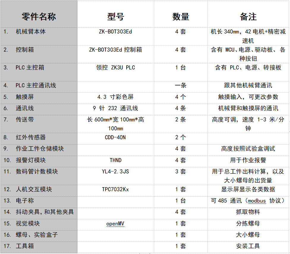 其他:包括系統實訓臺、控制按鈕與連接器盒、不同大小螺母、走線槽等氣路系統組成。