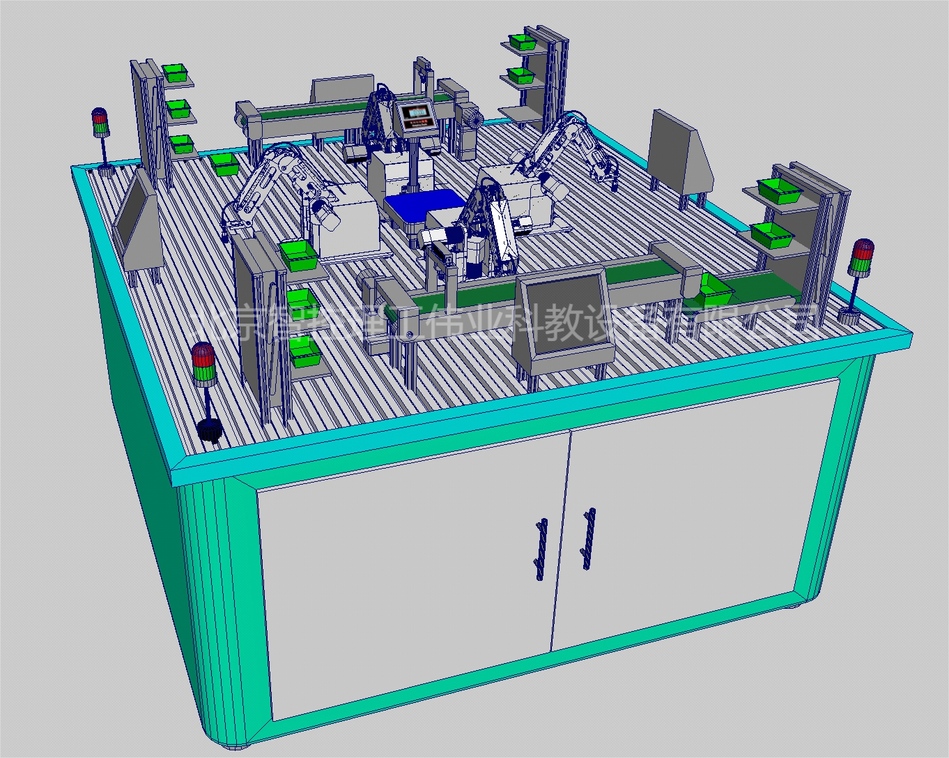 本裝置是一種教學培訓展示產線且最為典型的機電氣一體化產品,是為高等院校、職業院校、職業教育培訓機構而研制的,適合工業機器人、機電一體化、電氣自動化等相關專業的教學和培訓。它在接近工業生產制造現場基礎上又針對教學及實訓目的進行了專門設計,強化了機電氣一體化的安裝與調試能力。