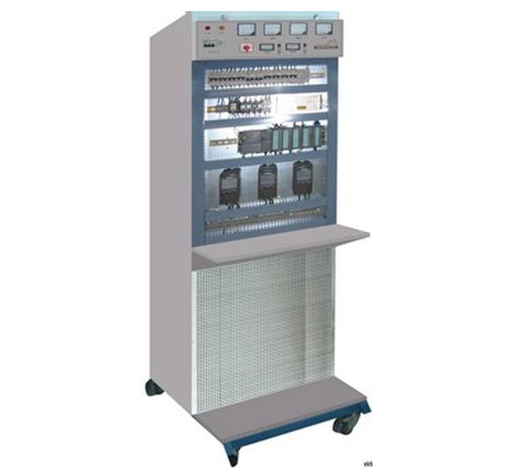 網板式PLC變頻器實訓柜是在電工的基礎上進行改進,增加了PLC直接控制工業電氣實驗、再增加了變頻器的自動調速實驗,增加了電腦網絡連網考試功能,可有老師主控電腦制進行自動聯網考試。該裝置按標準電氣控制柜設計制造規格,采用網孔板結構,柜內裝有電路所需的PLC、變頻器、電度表、日光燈、開關、插座、感應開關、漏電開關以及電氣控制所需要的多種低壓電器,如漏電斷器、熔斷器、電流、互感器、交流接觸器、時間繼電器、熱繼電器、中間繼電器、行程開關、按鈕、信號燈、轉換開關、電壓表、電流表、有動功率表、無動功率表、電度表和工作電源、定時、誤操作記錄儀等,增加了電腦網絡式連網考核功能,可由教師主控電腦控制64臺。