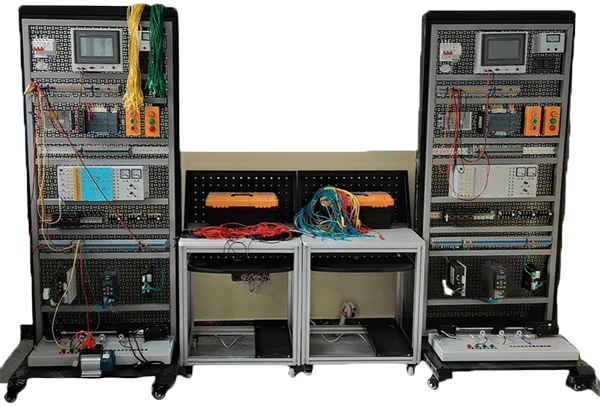 PLC電器實(shí)訓(xùn)臺(tái)、專門用于學(xué)員進(jìn)行電氣控制與實(shí)踐連接的控制平臺(tái),采用歐標(biāo)鋁型材框架、立式設(shè)計(jì)網(wǎng)孔板形式安裝,可以安裝按鈕開(kāi)關(guān)、指示燈、PLC控制系統(tǒng)、直流電源、電機(jī)等電氣元件。用于學(xué)生進(jìn)行電氣安裝與調(diào)試工作。PLC電氣實(shí)訓(xùn)裝置元器件與DIN導(dǎo)安裝為主,特殊情況無(wú)法安裝元件采用支架方式進(jìn)行固定,在進(jìn)行實(shí)訓(xùn)操作時(shí)學(xué)生可以自行進(jìn)行安裝與電氣線路連接。工業(yè)自動(dòng)化網(wǎng)絡(luò)控制實(shí)訓(xùn)平臺(tái)、工作臺(tái)以網(wǎng)孔架為基礎(chǔ)實(shí)訓(xùn)單元,仿真企業(yè)真實(shí)環(huán)境,可開(kāi)展PLC系統(tǒng)基礎(chǔ)模塊連接實(shí)訓(xùn)。該工作臺(tái)采用單面實(shí)訓(xùn)方式,實(shí)訓(xùn)區(qū)主要由電源單元、PLC單元、PLC學(xué)習(xí)箱單元、基礎(chǔ)實(shí)訓(xùn)單元、擴(kuò)展實(shí)訓(xùn)區(qū)(伺服控制小車運(yùn)動(dòng)實(shí)訓(xùn)單元、步進(jìn)電機(jī)單元和變頻器單元)六大部分組成。