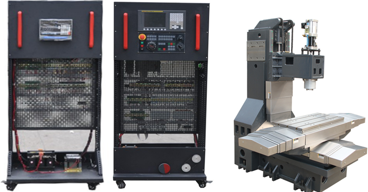 2.機床實訓柜采用鐵質亞光密紋噴塑結構,正面裝有數控系統和操作面板,背面為機床電氣柜,柜內器件布局與實際機床廠的模式一致。電氣柜內的電氣安裝板為多功能網孔板,上面裝有伺服驅動器、交流接觸器、繼電器、保險絲座、斷路器、開關電源、接線端子排和走線槽等;電氣柜底部還設有變壓器和接地端子等。