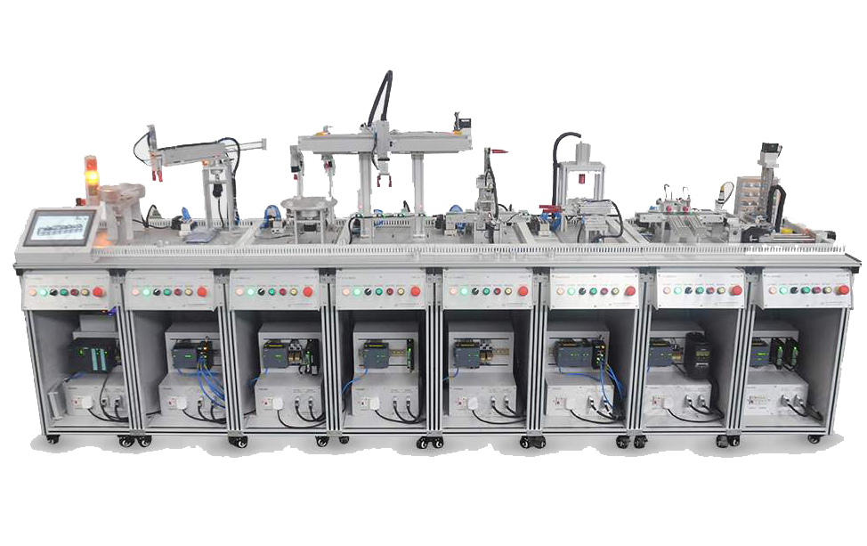 LGJ-RX08模塊化柔性自動化生產實訓系統(八站式)是在LGJ-RX06型 模塊化柔性自動化生產實訓系統(六站式)基礎上拓展為復雜的工件裝置站與自動沖壓站,工作站點達到 8個之多進一步加深了對控制要求。LGJ-SJ65綜合了實際工業生產中大量應用到的復雜控制過程的教學培訓裝置,根據現代生產物流系統發展和未來趨勢而專門設計,它以培養學生專業知識應用能力、綜合實踐能力、創新能力為主要目標。