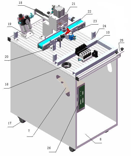 該系統(tǒng)的各站是安裝在帶槽的鋁型板上,各站可容易的連接在一起組成一條自動加工生產(chǎn)線。站內(nèi)由各種模塊化形式構(gòu)成,各模塊之間易于搭建、拆卸和維護(hù),各工作站之間可隨意組合。