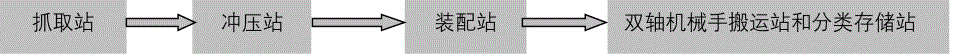 2、沖壓站的工作過程:皮帶把合格的料塊運(yùn)送到下料口,制作好的Tag自動放到合格的料塊里。用于制作Tag的料塊,經(jīng)過擋料氣缸、推料氣缸、沖壓氣缸、Tag氣缸有順序的加工,變成合格的Tag放到合格的料塊里,經(jīng)過皮帶運(yùn)輸?shù)窖b配站。
