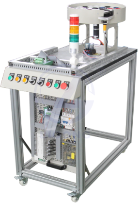 由輸送帶、檢測機構、推料氣缸、旋轉氣缸、分揀料槽、交流電動機、變頻器、同步帶輪、光電傳感器、色標傳感器等組成,主要完成對工件的輸送及分揀。